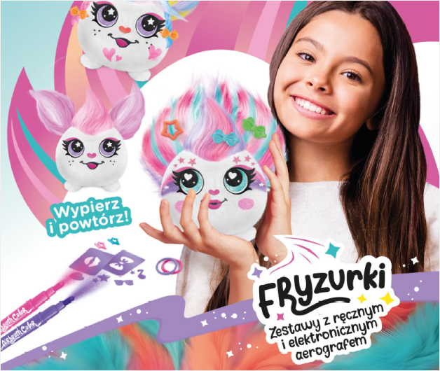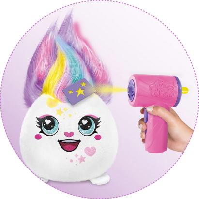 Z zestawem Projekt Plusz Fryzurki możesz dekorować, stylizować i odświeżać wygląd swojego pluszaka bez końca. To proste – przyklej jeden z dołączonych szablonów i użyj elektronicznego aerografu w kształcie suszarki do włosów, by nanieść kolorowe wzory. A kiedy przyjdzie czas na zmianę stylizacji? Po prostu wypierz pluszaka i zacznij zabawę od nowa!